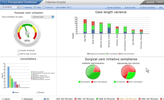 Picis will have a May 14 webinar on its Perioperative Dashboard. A customer will be presenting. Since they e-mailed me a press release, I felt empowered to conveniently ignored the copyright warnings at the beginning of their online demo and take a screen shot because I though it looked cool. You can click to enlarge, at least until they tell me to yank it down.