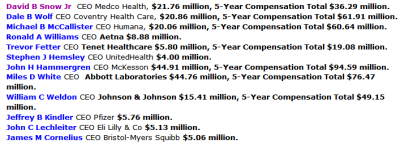Bill Moyers lauds the choice of Regina Benjamin as surgeon general nominee, contrasting her hardscrabble upbringing and low-rent medical practice serving the less fortunate to the suits running the for-profit side of healthcare. Named: Cigna’s chair ($11 million in the last year), Aetna’s CEO ($17 million), and McKesson’s John Hammergren ($29.7 million). The list above was provided in a comment on the article. I wish I’d said this: “Here’s the difference. To Dr. Regina Benjamin, health care is a public service, helping people in need with grace and compassion. To Ed Hanway and his highly paid friends, it’s big business, a commodity to be sold to those who can afford it. And woe to anyone who gets between them and the profits they reap from sick people … As we reported last week, that behavior includes spending nearly a million and a half a day to make sure health care reform comes out their way. Over the years they’ve lavished millions on the politicians who are writing and voting on health care reform. Now it’s payback time.” From this hardcore fiscal conservative, amen, liberal brother Bill Moyers. If you want to make a million dollars a year without actually delivering patient care, then please choose another industry because healthcare can’t afford you, whether you’re a drug company czar or an overpaid hospital CEO (your results have kind of sucked anyway). Unfortunately, politicians gravitate to money like mosquitoes to a bug zapper, so people just as accomplished and dedicated as Regina Benjamin don’t carry much weight.