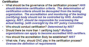 The marginalization of CCHIT by the HIT policy committee definitely seems to be something people have ignored. Thanks for highlighting it. However, expect CCHIT to come back and try to say that their thorough certification somehow improves EHR programs far beyond what ARRA actually does. Their fight isn’t over, but I believe now they will lose the battle.