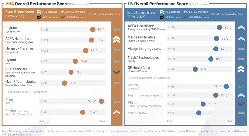 A new KLAS report looks at enterprise imaging, specifically vendor-neutral archive and universal viewer. It notes that radiology and cardiology are the most widely stored and viewed image types, with growth in some areas, but few organizations are storing POCUS (wound care and dermatology images) and little progress has been made in digital pathology usage.